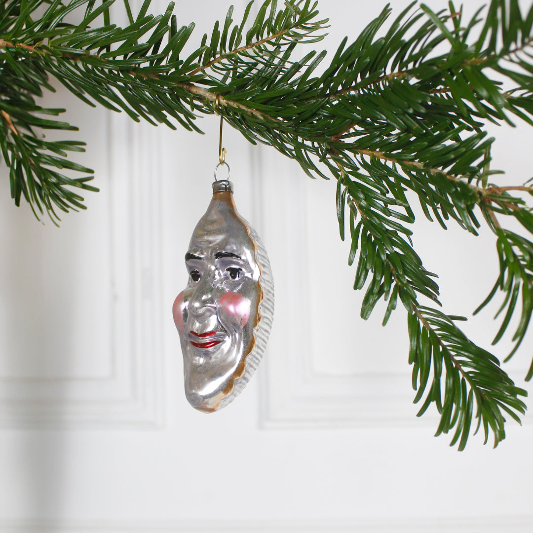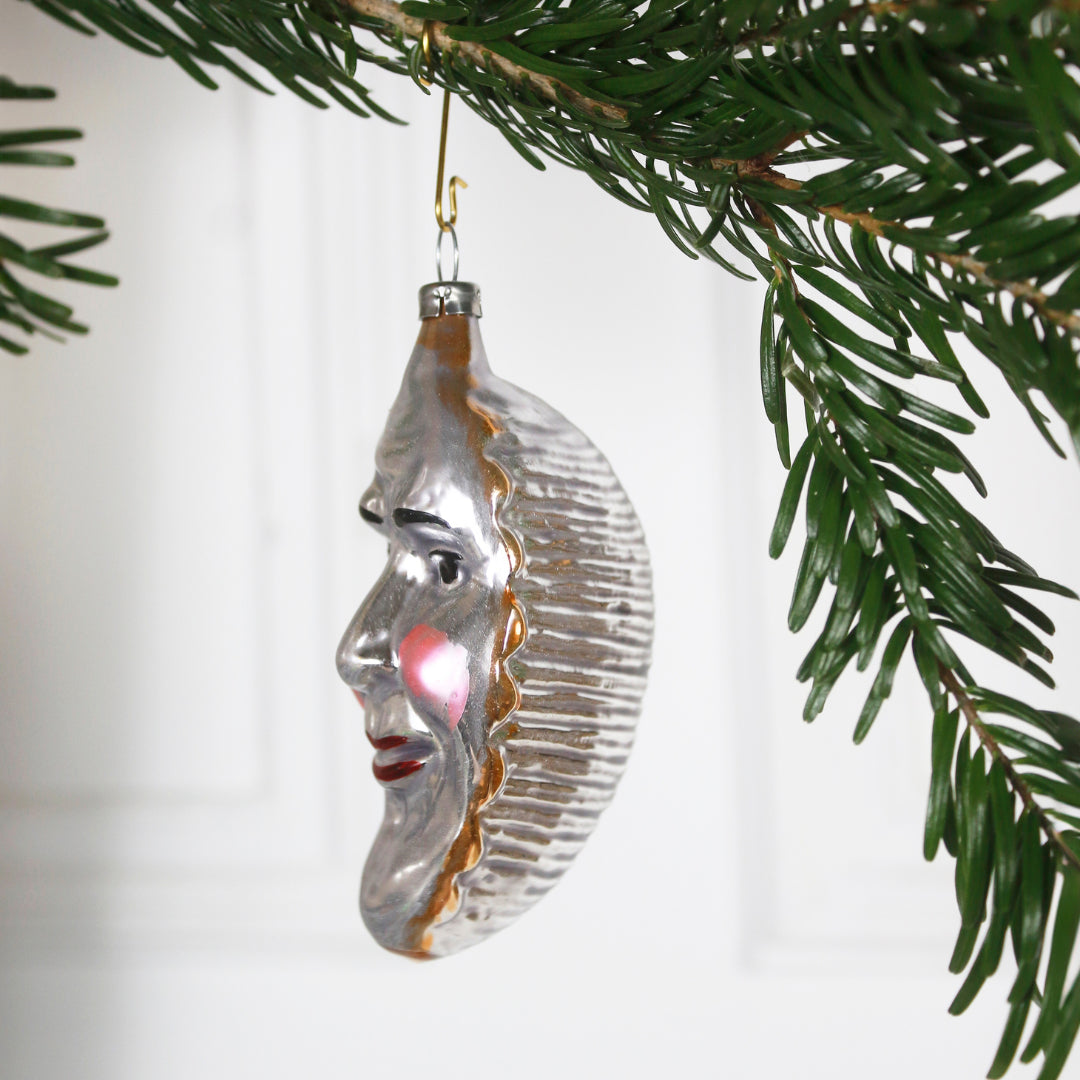 Charmant visage de lune argent, réédition d'ornements anciens.
