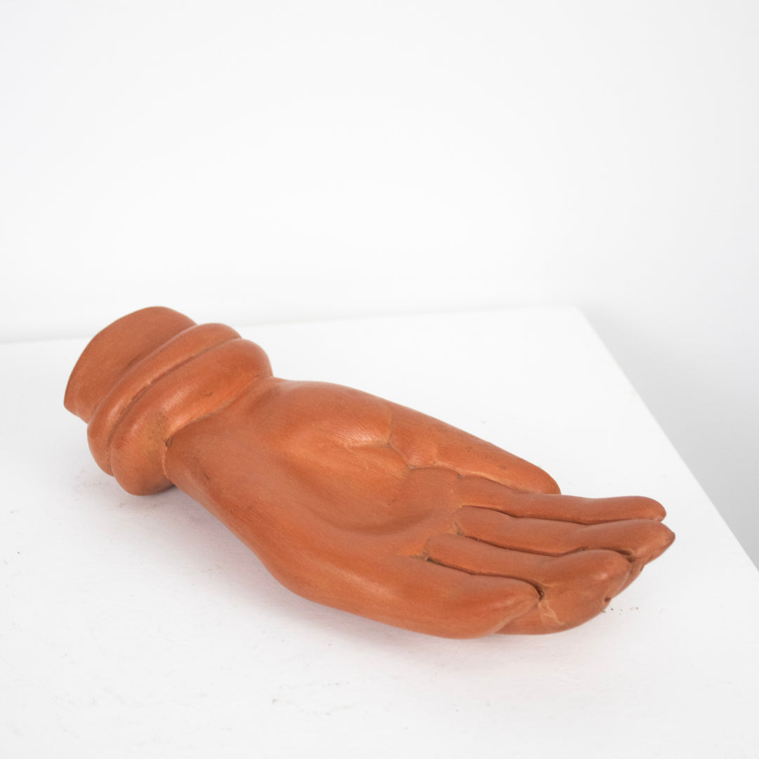 Exceptionnelle main en terre cuite, signée Jean Marais. Une pièce sculpturale au caractère unique, qui peut se poser comme objet d’art ou s’accrocher au mur.