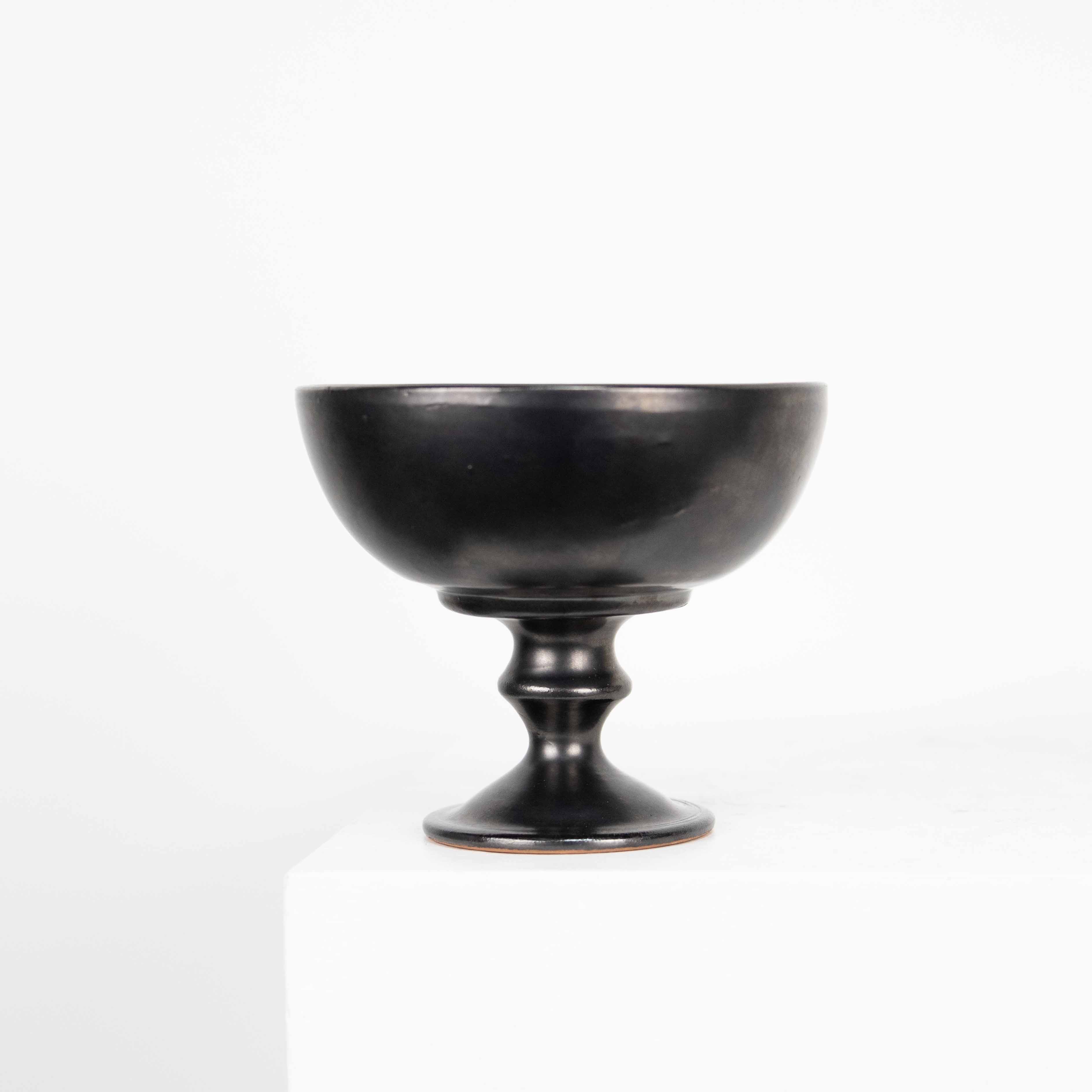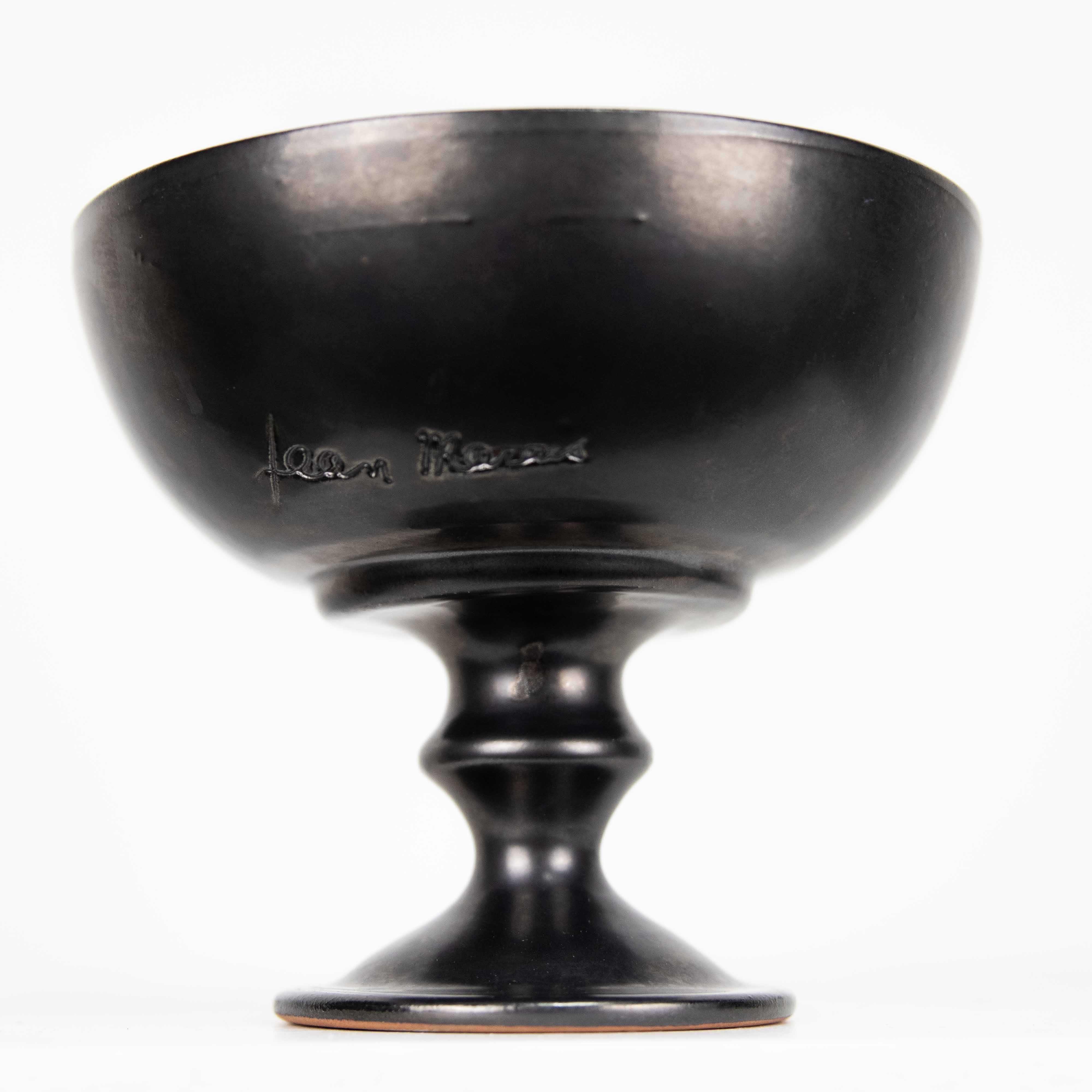 Petite coupe en céramique signée Jean Marais. Design épuré avec bol évasé et pied élancé. Émail noir mat aux qualités sculpturales. Pièce de collection du XXe siècle.